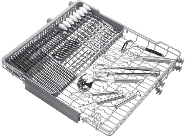 Используйте пространство посудомоечной машины с большей пользой. Третья раскладная металлическая корзина в верхней части обеспечивает специальную зону для столовых приборов и кухонной посуды, освобождая больше места в нижних корзинах. Это также означает, что предметы посуды можно легко загружать и выгружать, особенно потому, что он съемный и его можно перемещать куда угодно.