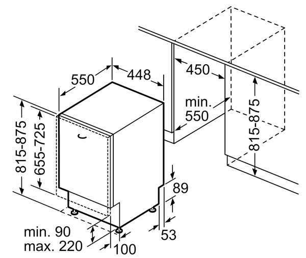 На боковых стенках верхнего короба размещены специальный механизм, при нажатии на который короб можно регулировать по высоте в трех позициях. Эта система значительно облегчает загрузку посуды, в том числе больших кастрюль и тарелок.