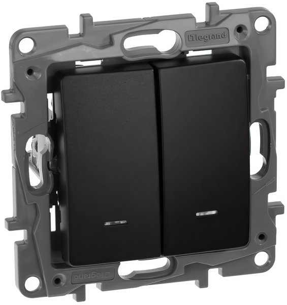 - Выключатель Legrand 2-клавишный с подсветкой Etika антрацит