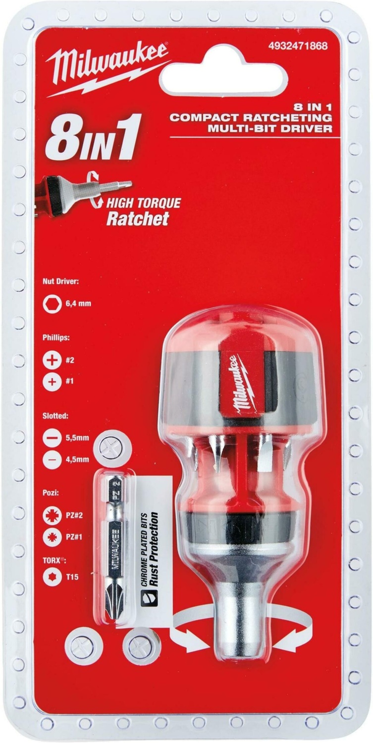 - Отвертка универсальная Milwaukee с трещоткой 8 в 1 (4932471868)