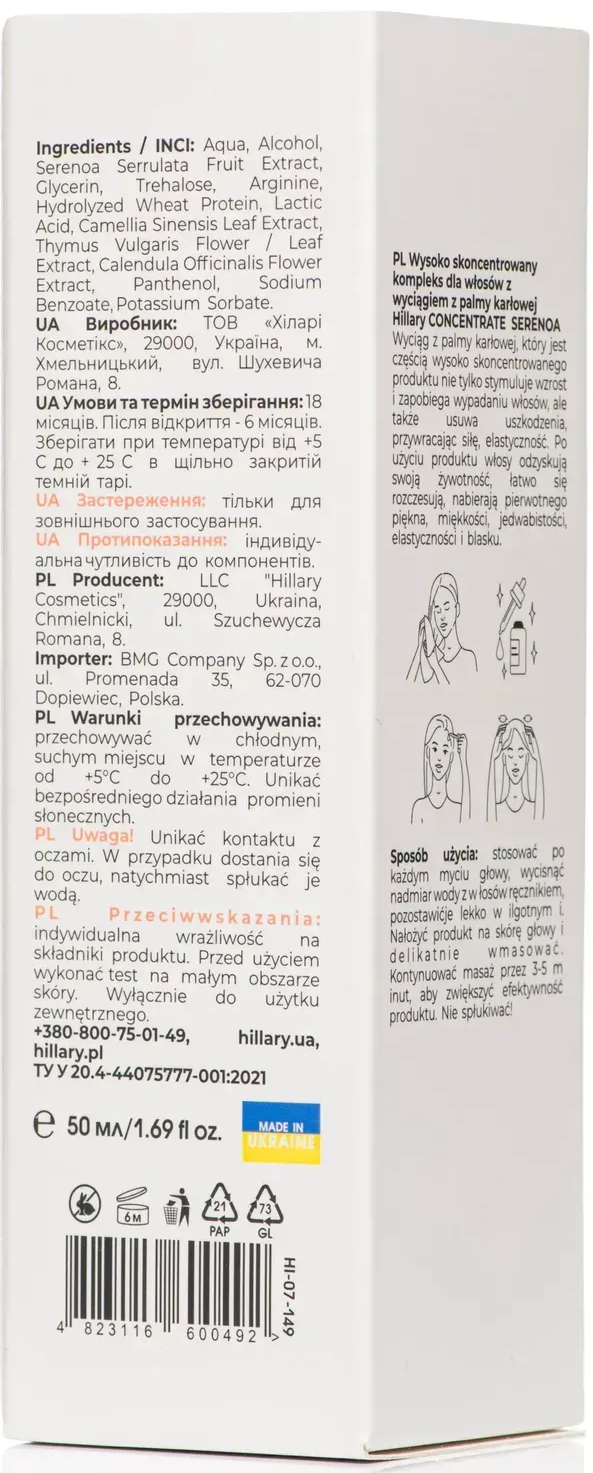 Высококонцентрированный комплекс для волос Hillary Consentrate Serenoa с экстрактом карликовой пальмы 50 мл