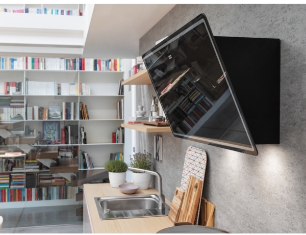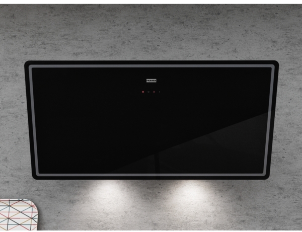 Стеклянная панель имеет возможность фиксироваться в открытом состоянии, что позволяет втягивать практически все испарения с плиты. Производительность вытяжки позволяет эффективно работать на площади до 24 квадратных метров. Производительность на максимальной скорости составляет 600 м куб./час. Благодаря декоративной панели, которая скрывает жировые фильтры, создается эффект периметрального втягивания, когда скорость воздушного потока повышается по периметру панели, благодаря чему вытяжка подхватывает испарения из посуды до 25% эффективнее. Благодаря инновационному дизайну турбины значительно уменьшается турбулентность и завихрения внутреннего потока воздуха. Вытяжки с технологией Sound Pro работают тише.