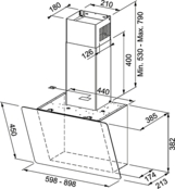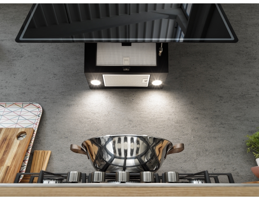 Вертикальная вытяжка с наклонной стеклянной панелью не имеет выступающих частей, поэтому ухаживать за вытяжкой чрезвычайно просто. Стекло прекрасно моется и не требовательно к бытовой химии. Чтобы помыть панель, достаточно просто протереть ее, используя средство для ухода за вытяжками. Фильтры нужно мыть каждые 100 часов работы вручную или в посудомоечной машине.
