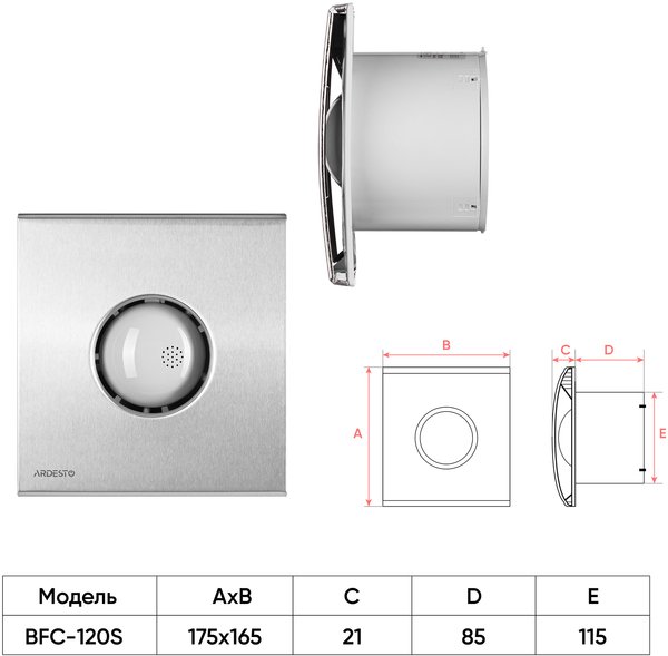 Относительно конструкции: при высоте 175 мм глубина стенок вентилятора составляет 21 мм, а короба - 85 мм. Диаметр короба - 115 мм, поэтому диаметр отверстия в поверхности должен быть 120 мм - простое решение, так что нет необходимости в сложных расчетах. Ardesto BFC-120S - не просто функциональное устройство, это удачный элемент современного дизайна, который сделает пространство более уютным. Стильный, мощный и эффективный, он создан для тех, кто ценит комфорт и эстетику в каждой детали интерьера.