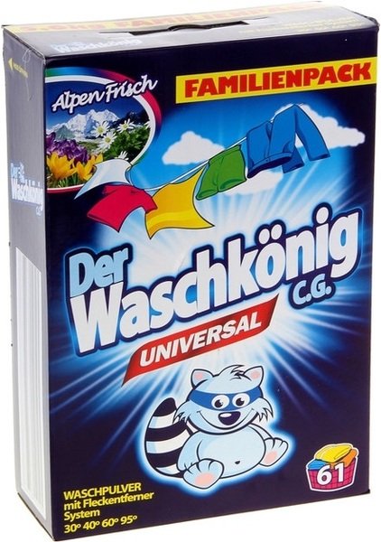 - Порошок для стирки Der Waschkönig Universal быстро растворяется в воде и легко удаляет пятна без ущерба для цвета.