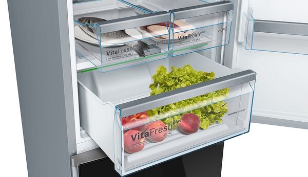 Система сохранения свежести VitaFresh plus обеспечивает идеальные условия для хранения рыбы, мяса, овощей и фруктов, сохраняя их свежими вдвое дольше.