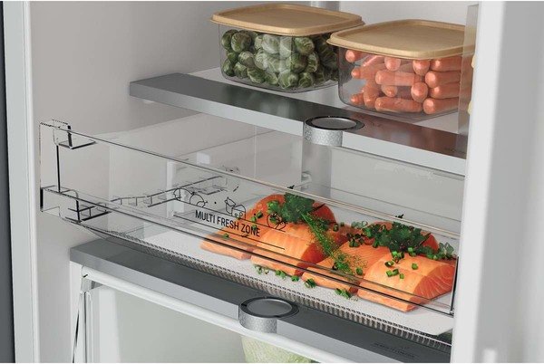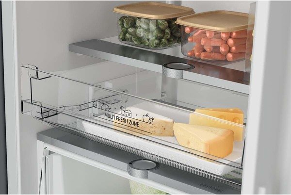 Контейнер с возможностью настройки температурного режима. Идеальная температура для любых продуктов. Multi Fresh Zone - это контейнер на всю ширину холодильной камеры с тремя опциями настройки температуры. Просто поверните ручку, чтобы создать идеальные условия для хранения молочных продуктов, рыбы и мяса или овощей и фруктов.