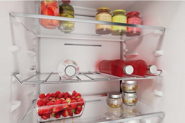 Полностью регулируемое пространство холодильника. Регулируемые контейнеры на дверце можно адаптировать к бутылкам разной высоты.