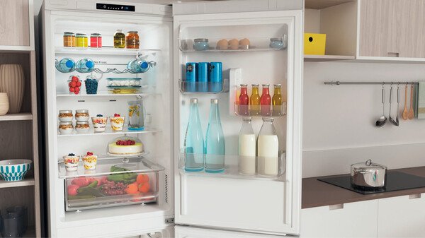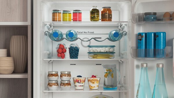 Система охлаждения Total No Frost обеспечивает идеальную циркуляцию холодного воздуха в холодильной и морозильной камерах, предотвращая образование льда. Это создает идеальные условия для сохранения пищи дольше.
