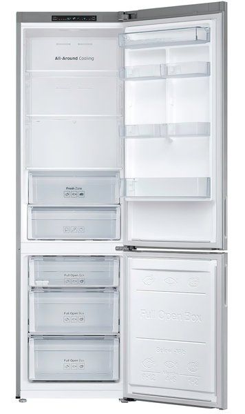 Samsung RB 37 J 5000 SA — холодильник повышенной вместимости 367 л. Разработка Space Max основана на расширении внутреннего объема с сохранением внешних габаритов. Такой результат достигается посредством утоньшения стенок и использования особого теплоизолирующего материала. Зонирование площади холодильной камеры позволяет оптимально разместить продукты и сохранить свежесть дольше.