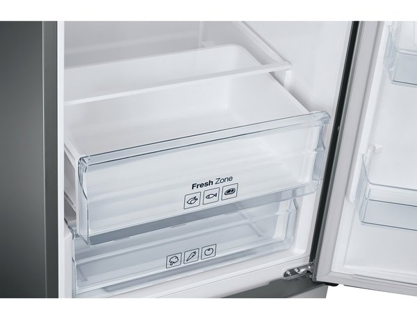 Отсек FreshZone идеален для хранения мясных и рыбных продуктов благодаря поддержанию нужного температурного режима. В нижней части холодильного отделения расположился контейнер для долгого хранения фруктов и овощей.