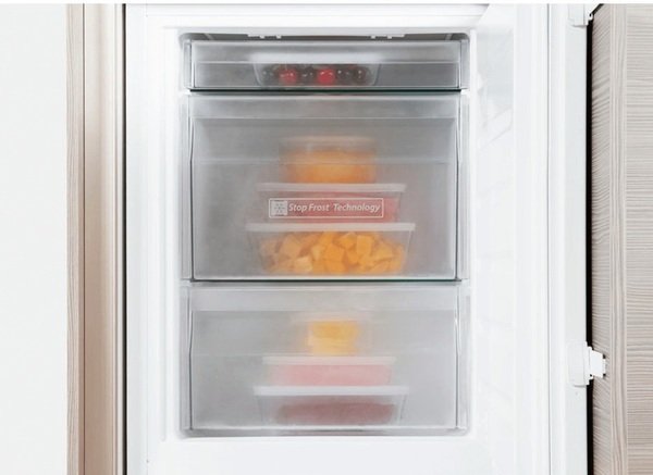1 минута размораживания 1 раз в месяц. Весь лед в морозильной камере собирается в специальный поддон для очистки под водопроводным краном. Технология Stop Frost позволяет легче открывать, закрывать и вынимать продукты из ящиков. Чтобы разморозить, просто снимите один раз в месяц ледосборник в верхней части морозильной камеры и промойте его под краном в течение 1 минуты.