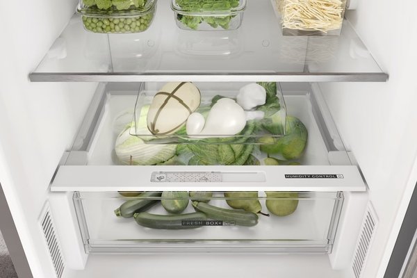 Ящик со слайдерным регулятором влажности для хранения фруктов и овощей в оптимально свежем состоянии и внешнем виде.