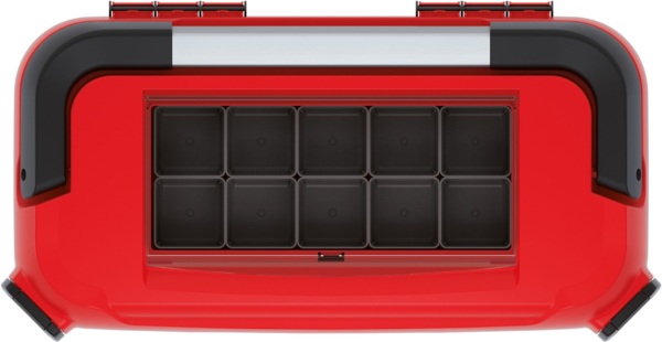 Длина 500 мм позволяет хранить в ящике разнообразные принадлежности, включая длинные инструменты, такие как уровень, молоток и тому подобное. Длинная алюминиевая ручка позволяет удобно транспортировать ящик. Большой органайзер в крышке с 10 съемными контейнерами позволяет хранить мелкие детали отдельно от основного инструментария. Также есть съемный лоток для инструментов с отделением для бит.
