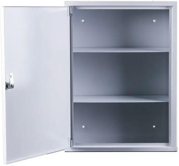 Ящик настенный металлический с двумя полками - идеально подходит для хранения медикаментов в офисе. Предназначен для использования в офисах, на производствах, заводах, фабриках, в стоматологических и медицинских кабинетах. Изготовлен из прочного металла с порошковой покраской, что обеспечивает устойчивость к коррозии и легкую очистку. Компактная конструкция позволяет эффективно использовать пространство, а наличие внутренней полки помогает упорядочить хранение медикаментов и расходных материалов. Закрывается на замок, что повышает безопасность сохранности содержимого.