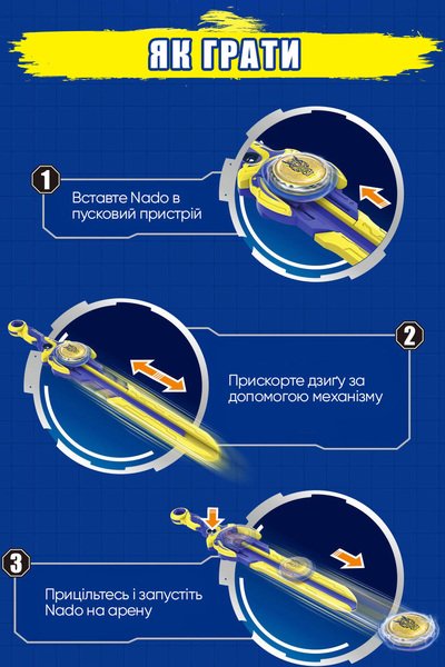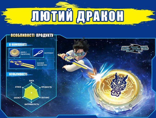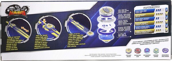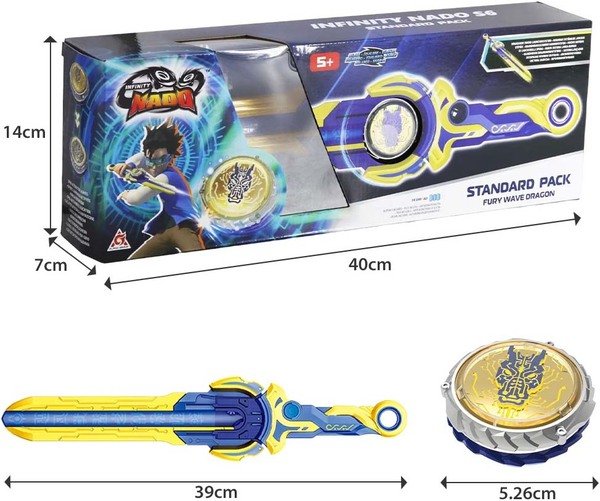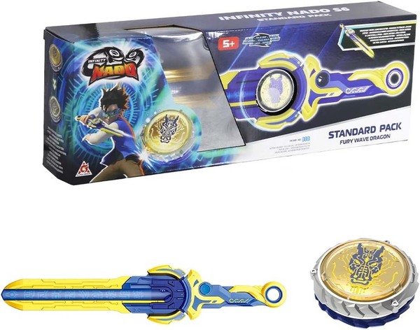Infinity Nado VI серии Standard Pack – волчок нового 6 поколения претерпела значительные усовершенствования, которые безоговорочно подарят новые эмоции от еще более зрелищных и интересных поединков. Совершенно новая система запуска волчка на арену реализована с помощью эпического лаунчера в виде меча, пусковая система призвана обеспечить контролируемый скоростной запуск.