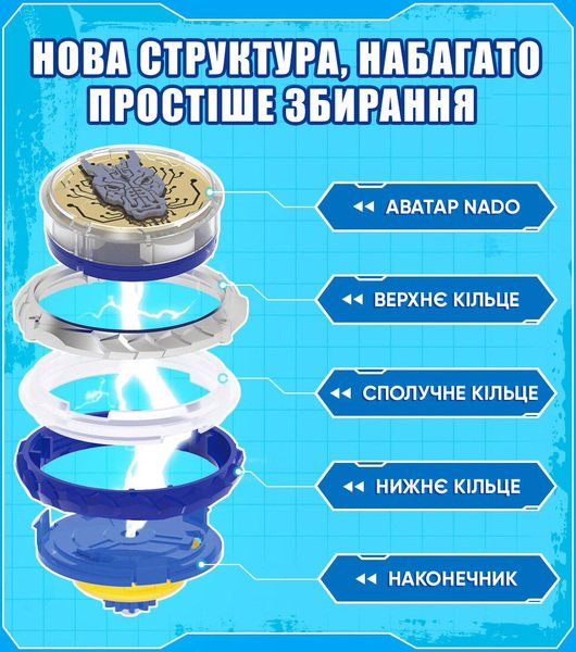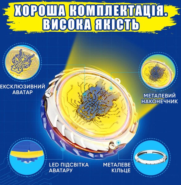 | Комплектация | Батарейка LR41 - 3 шт., Волчок, Инструкция, Ключ для сборки, Лаунчер |
