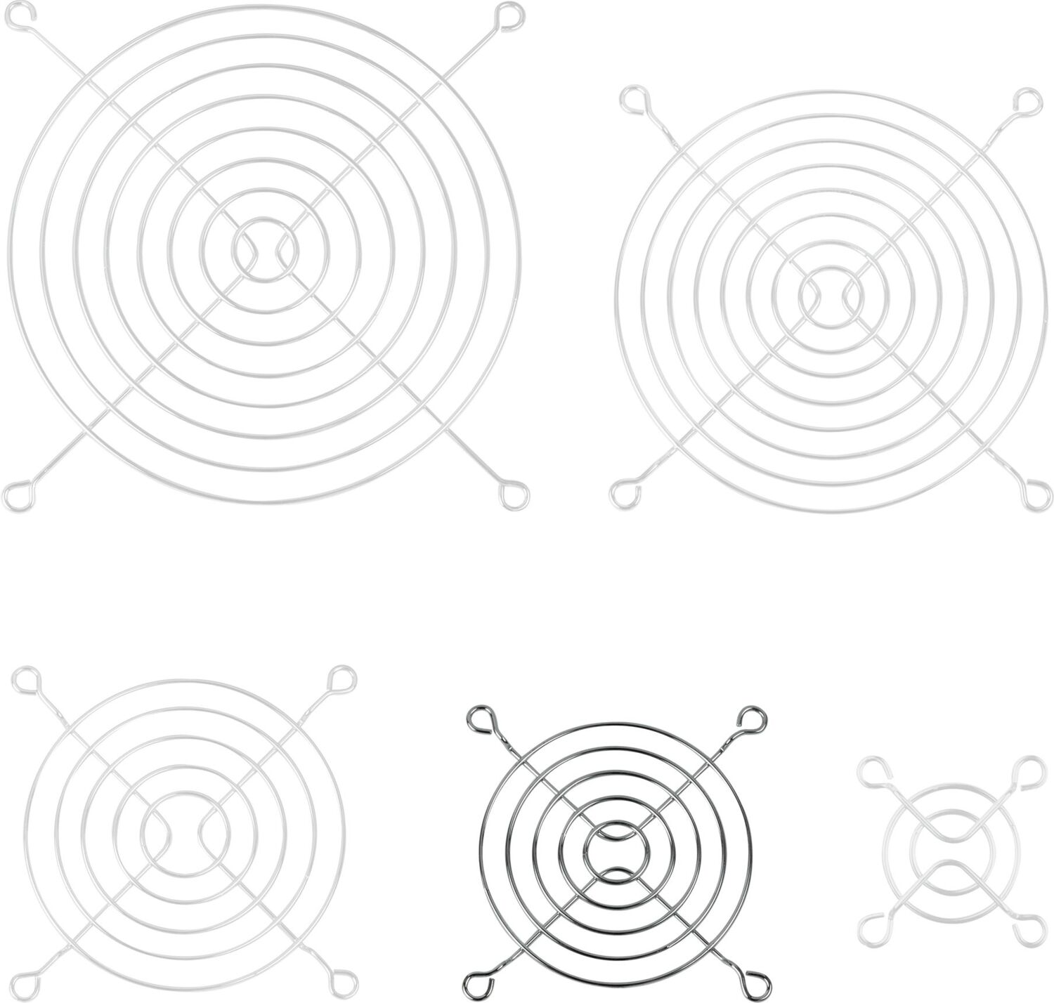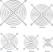 Решетки вентилятора доступны в нескольких различных размерах: 40 мм, 80 мм, 92 мм, 120 мм и 140 мм.