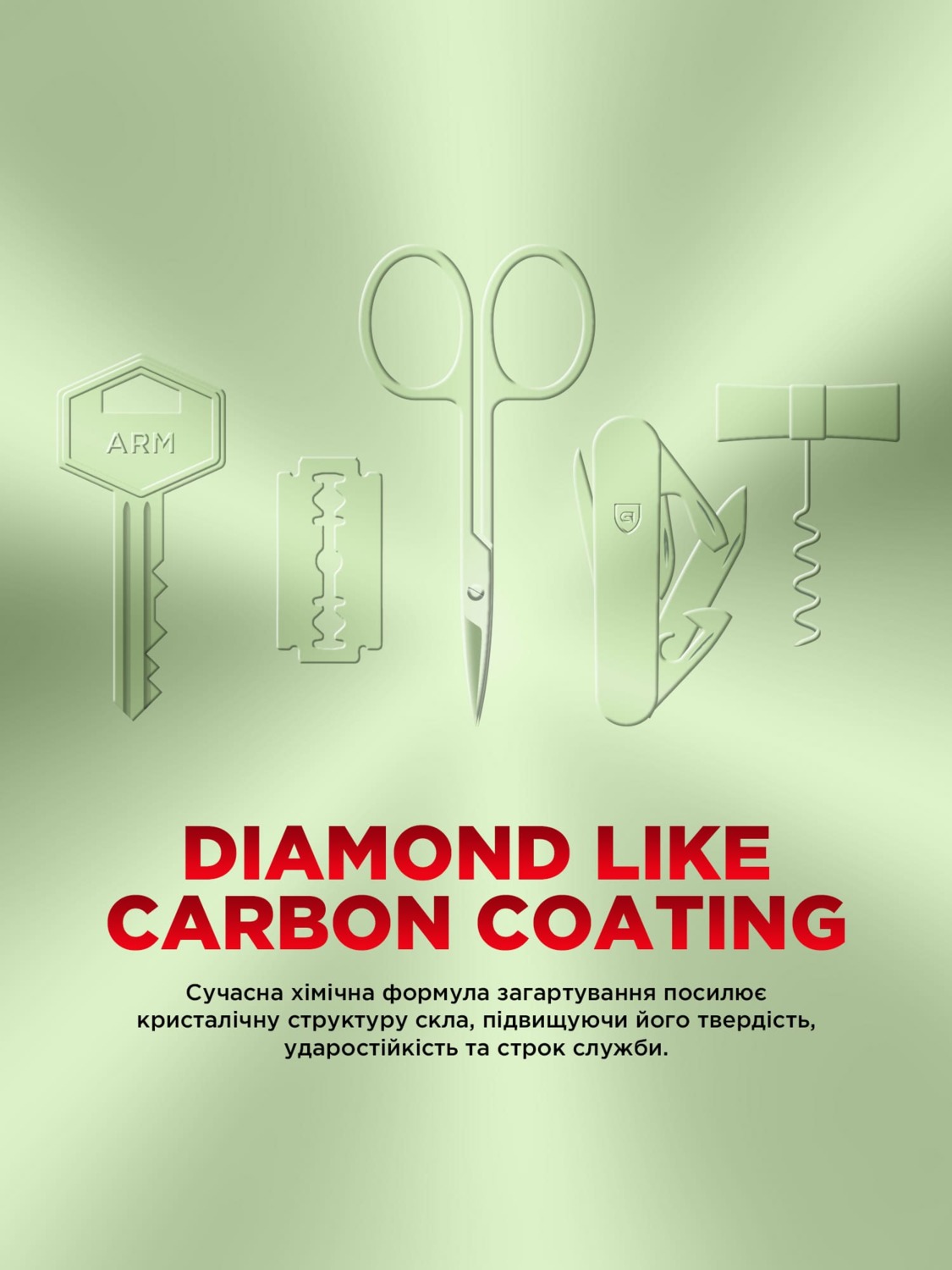 Алмазоподобное углеродное покрытие создает повышенную стойкость, которая ощущается в мелочах: даже после встреч с ключами или металлическими предметами поверхность остается ровной. В то время как стандартные модели начинают тускнеть по краям, это стекло сохраняет чистый вид и гладкую фактуру - день за днем, без повода задумываться о замене.