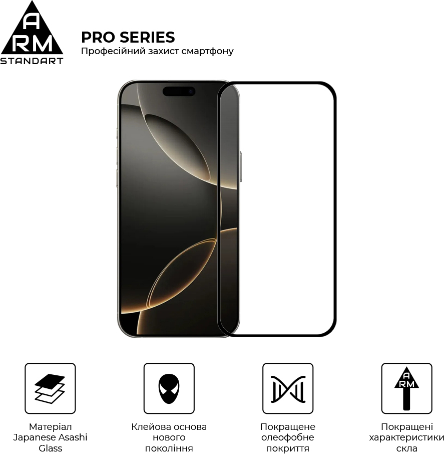 - Защитное стекло ArmorStandart Pro для Apple iPhone 17 Pro (ARM86412)