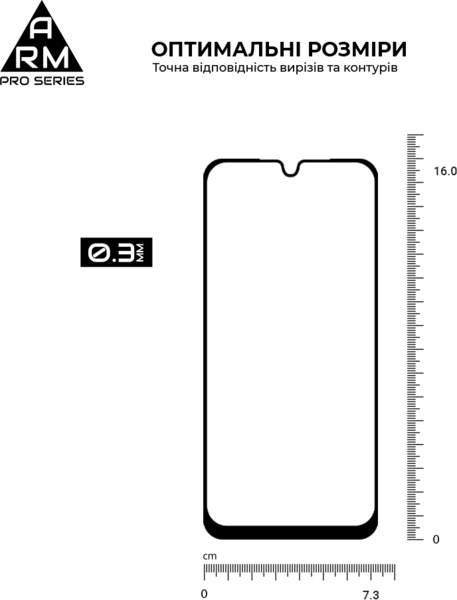 Защитное стекло ArmorStandart Pro имеет оптимальные габариты и толщину 0,3 мм. Предусмотрены вырезы под все датчики, камеры и разъемы.
