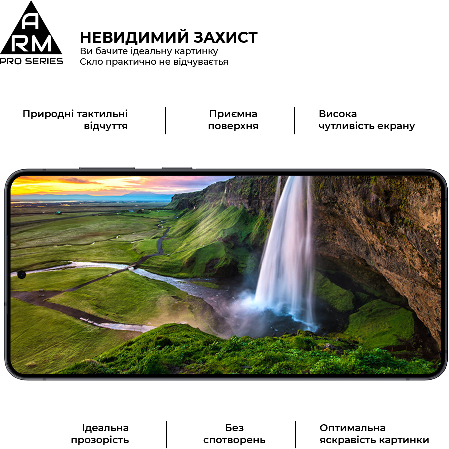 Передняя часть имеет улучшенное олеофобное и гидрофобное покрытие. Это обеспечивает естественные тактильные ощущения - пальцы легко скользят по поверхности. При этом изображение отображается с аутентичной яркостью и четкостью без искажений.