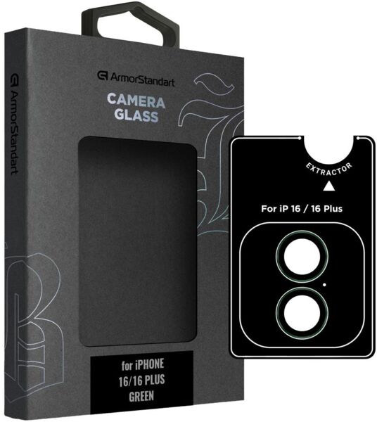 - Защитное стекло для камеры ArmorStandart Supreme BI для Apple iPhone 16/16 Plus Green (ARM79429)