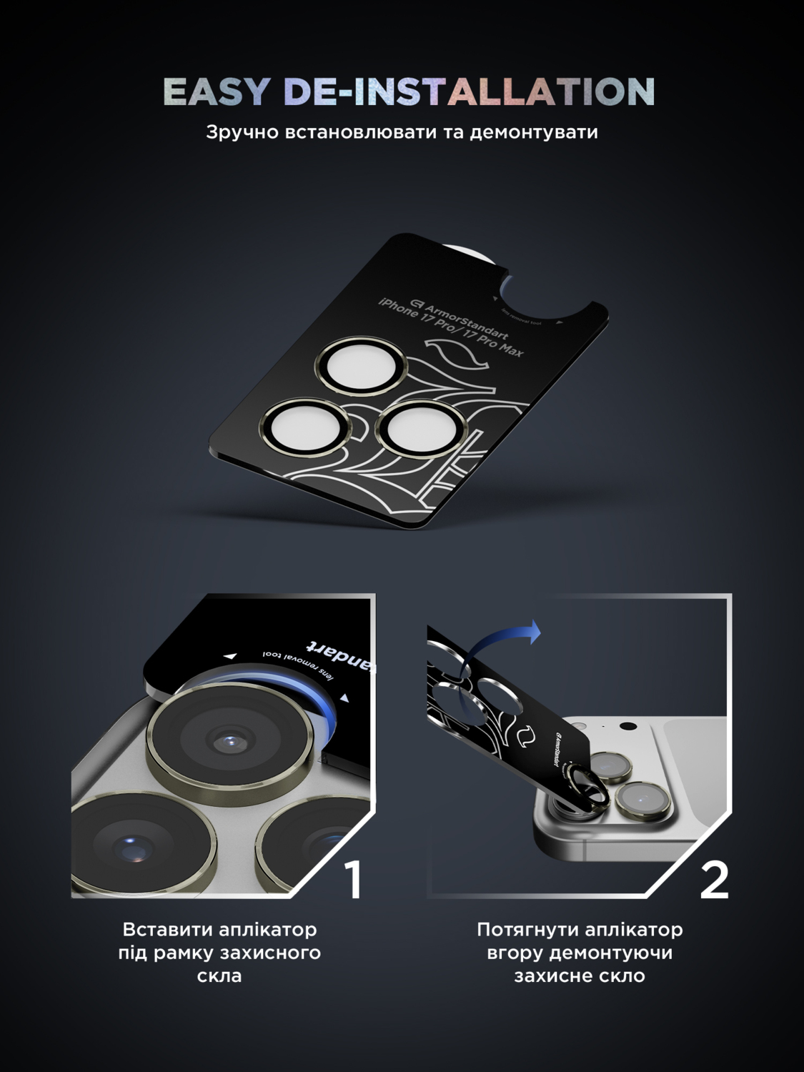 Защитное стекло для камеры ArmorStandart Supreme BI для Apple iPhone 17 Pro / 17 Pro Max Titanium (ARM86437)
