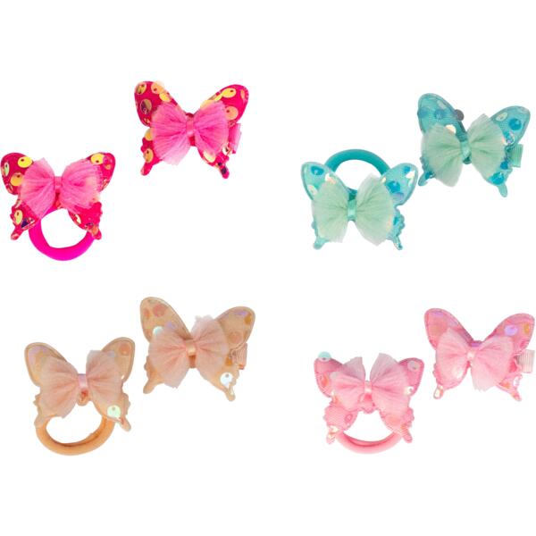 Набор аксессуаров для волос Lukky в виде очаровательных бабочек станет идеальным дополнением к нежному образу. Комплект включает резинки для волос, украшенные яркими пайетками и нежными фатиновыми бантами. Благодаря качественным материалам резинки не травмируют волосы и удобны в ношении. Блестящие элементы добавляют прическе праздничности и привлекают внимание. Набор подходит как для повседневного использования, так и для особых событий. Идеальный выбор для маленьких модниц, которые любят стильные и сказочные детали. Эти аксессуары помогут создать волшебные прически, добавляя образу легкости и изящества.