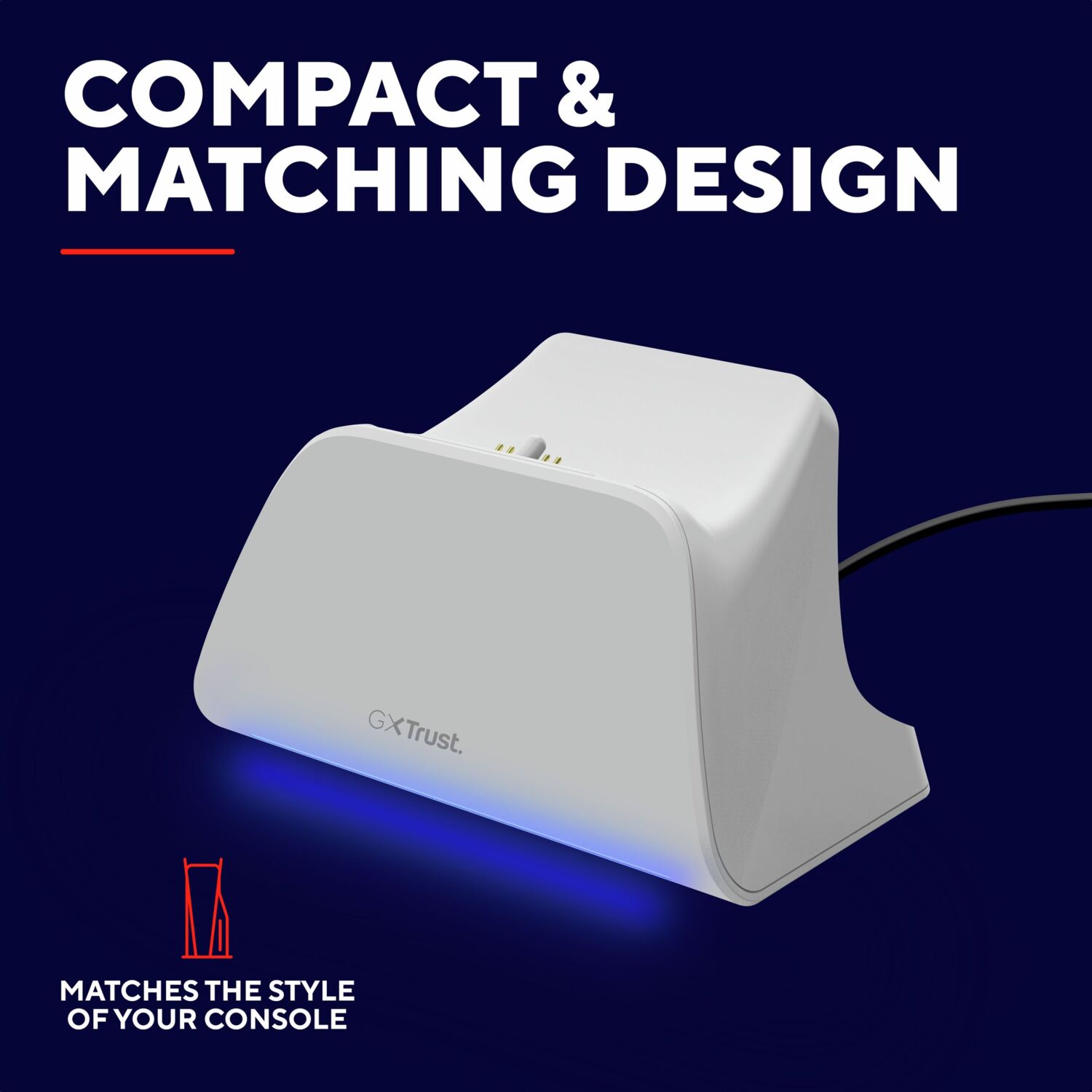 Меньше хлопот, больше динамики. Благодаря противоскользящей подкладке эта подставка для быстрой зарядки никуда не денется. Более того, она комплектуется зарядным кабелем USB-C-C, который можно легко подключить непосредственно к вашей PS5 или настенному адаптеру питания.