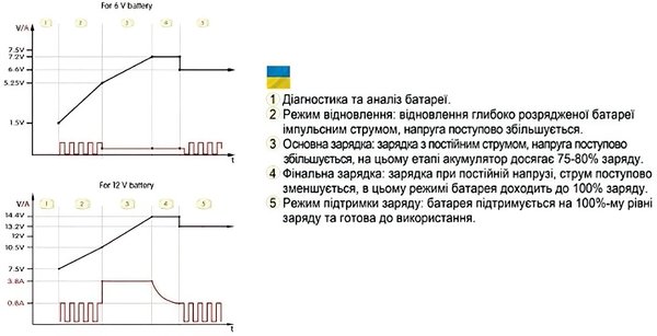 Устройство обладает уникальным режимом — десульфатации, который восстанавливает ёмкость аккумулятора, продлевая срок его службы.