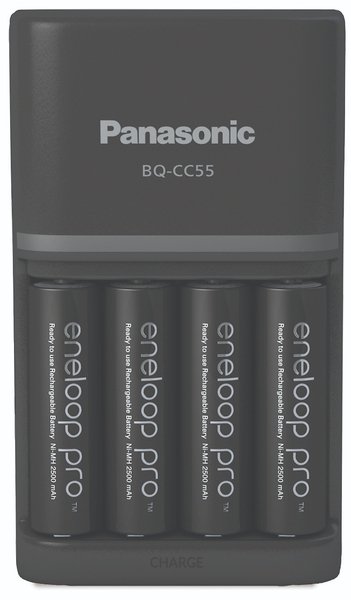- Зарядное устройство Panasonic Smart-Quick Charger + Аккумулятор Eneloop Pro NI-MH AA 2500 мАч, 4 шт. (K-KJ55HCD40E)