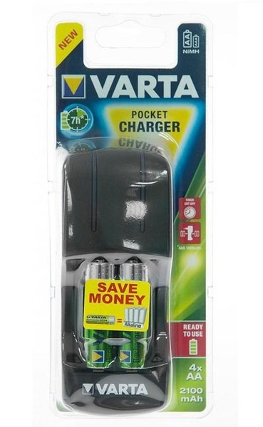 Зарядное устройство VARTA Pocket Charger + Аккумулятор NI-MH AA 2100 мАч, 4 шт. (57642101451)