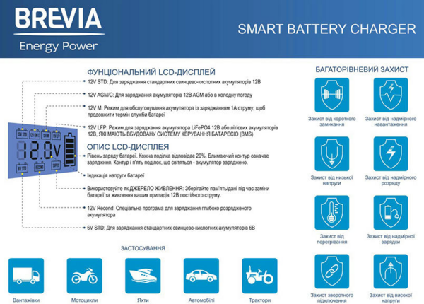 - Безопасность: защита от перезаряда, переполюсовки, искрения.