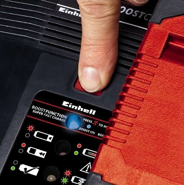 Ускоренное зарядное устройство для аккумуляторов Einhell 18V Power-X-Boostcharger 6 A линейки Power X-Change system серии Expert plus предназначено для обычного и ускоренного заряда одной аккумуляторной батареи Power X-Change Li-ion 18V с разными номиналами мощности 1,5 Аh, 2,0 Аh, 2 ,5 Аh, 2,6 Аh, 3,0 Аh, 4,0 Аh, 5,2 Аh и аккумуляторов Power X-Change Plus Li-ion 18V с номиналами мощности 4,0 Аh, 5,2 Аh, 4,0 – 6,0 Аh, 5,0 – 8,0 Аh. Циклы зарядки регулируются в соответствии с конкретным уровнем разряда батареи, поэтому батареи имеют более длительный срок службы. Интеллектуальное управление зарядкой обеспечивает максимальную безопасность. Постоянный мониторинг батареи обеспечивает оптимальную зарядку. Для удобного настенного монтажа имеются встроенные подвесные ушки.
