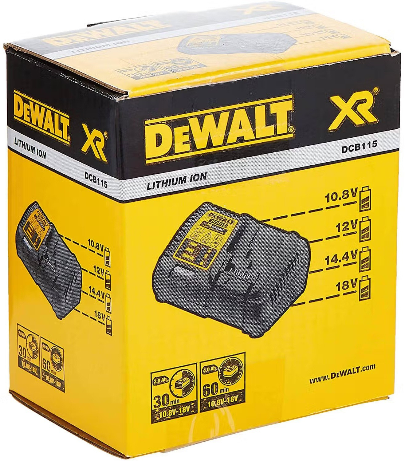 - Зарядное устройство DeWalt 10.8В/12В/18В/54В 4A 0.5кг (DCB115_N450536)