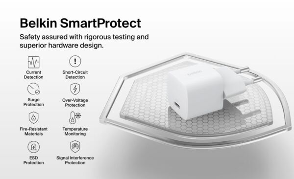 Сетевое зарядное устройство Belkin 25Вт USB-С PD PPS, White (WCA012KQWH)