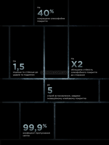 | Особенности | Защита от жира, Защита от потертостей, Защита от царапин, Олеофобное покрытие |