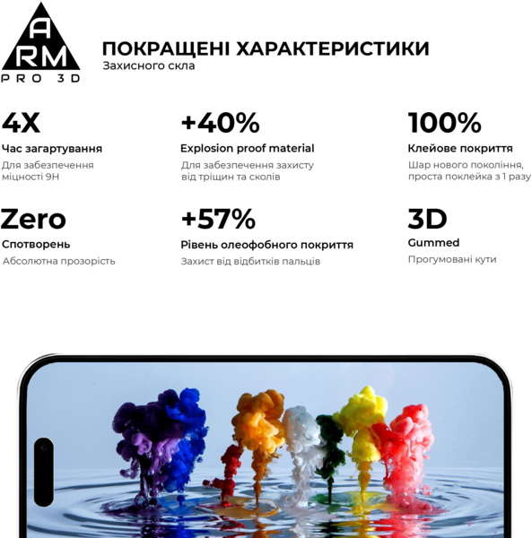 Защитное стекло ArmorStandart Pro 3D Series имеет оптимальные габариты и толщину 0,3 мм. В комплект входит все необходимое для быстрой и комфортной установки.