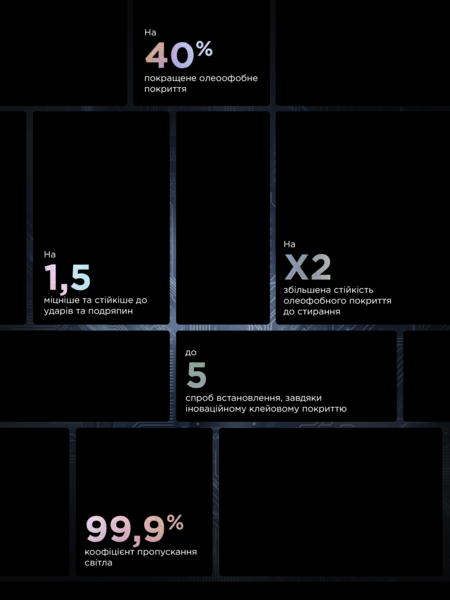 | Особенности | Защита от жира, Защита от потертостей, Защита от царапин, Олеофобное покрытие |