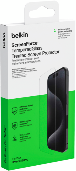 - Защитное стекло Belkin для iPhone 15 Pro TemperedGlass (1 Pack) (OVA137ZZ)