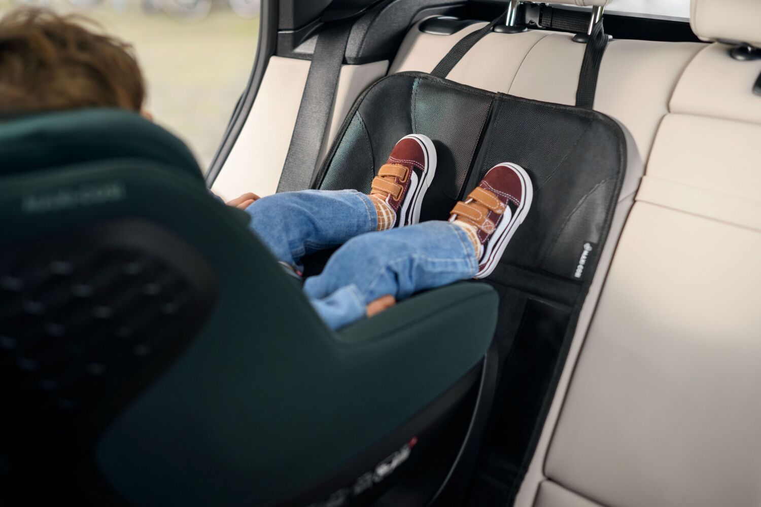 Не волнуйтесь, ваш великолепный салон автомобиля в безопасности благодаря защитному чехлу Maxi-Cosi, который полностью закрывает заднее сиденье, на котором установлено автокресло.
