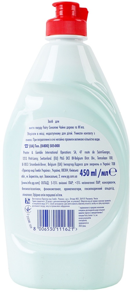 - Средство для мытья посуды Fairy Sensitive Чайное дерево и мята 450 мл