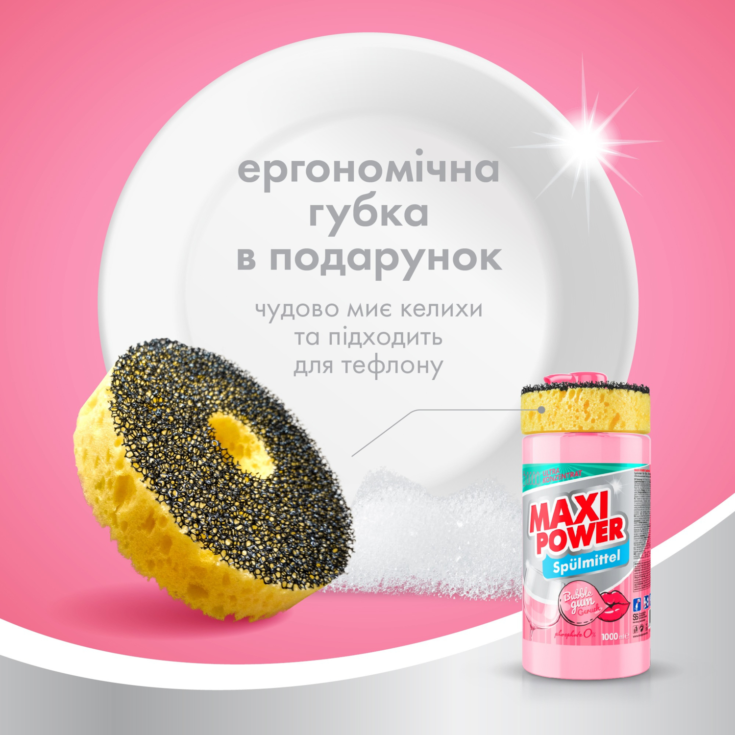 - Средство для мытья посуды Maxi Power Бабл Гамм 1 л