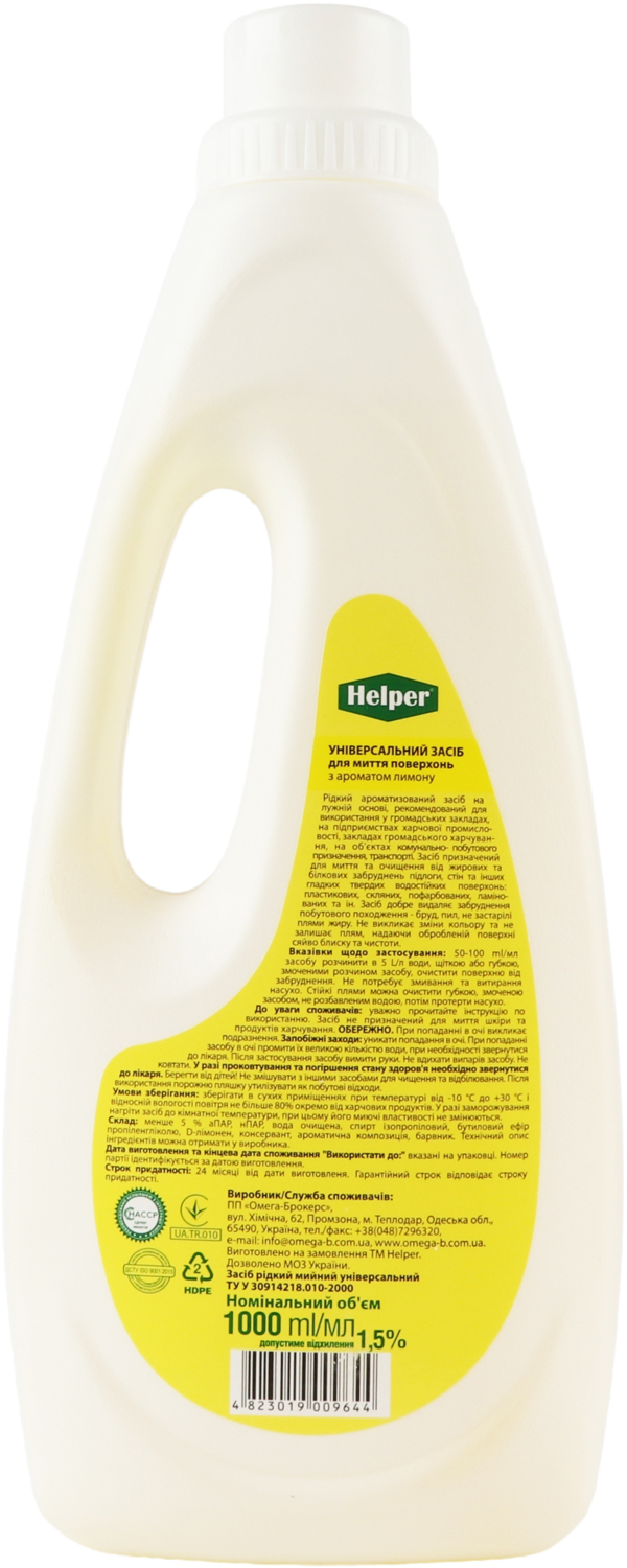 - Средство для мытья поверхностей Helper Универсальное с ароматом лимона 1 л