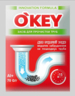 Средство O'KEY для растворения загрязнений в канализационных трубах. Оно быстро очищает все типы засорённых труб, удаляет бактериальный налёт, жир, волосы, остатки пищи, микробы и неприятный запах.
