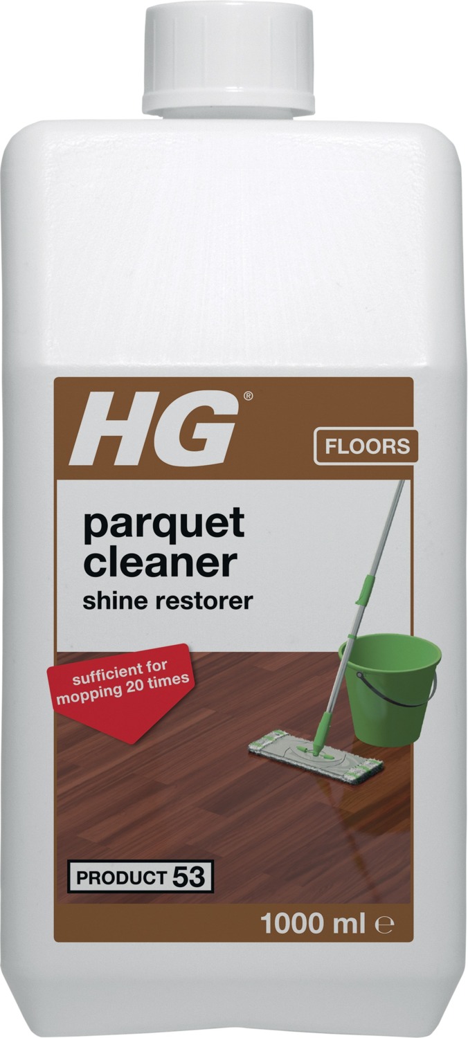 Очистить паркет очень легко со специальным средством HG. Оно создано с учетом всех особенностей напольного покрытия, поэтому не повреждает его поверхность, а после очистки не оставляет белых полос и царапин. Продукт имеет специальную моющую формулу, благодаря которой устраняет загрязнения любого типа. К тому же он формирует защитный слой, препятствующий появлению потускнения и износа. Средство придает поверхности красивый глянцевый блеск. Продукт подходит для регулярного ухода за лакированным паркетом, а также паркетом, который был обработан полиролью HG.