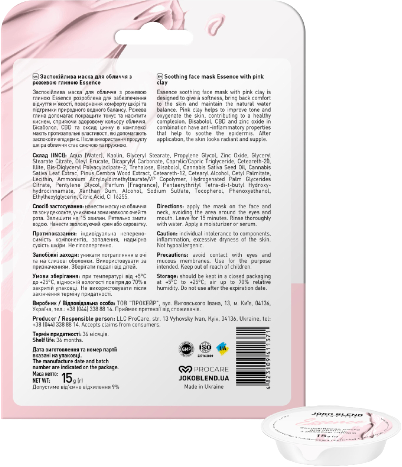 - Успокаивающая маска для лица Joko Blend Essence с розовой глиной 15 г