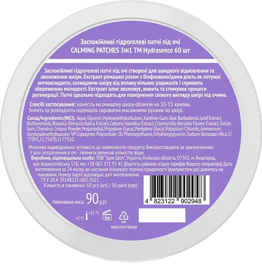 - Успокаивающие гидрогелевые патчи под глаза Hydrasence 60 шт