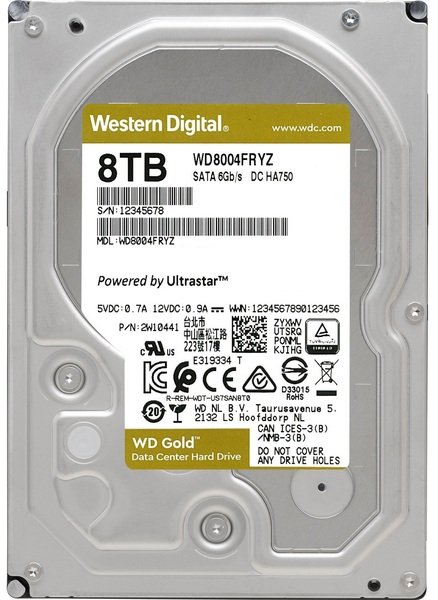 Жесткий диск внутренний WD 3.5" SATA 3.0 8TB 7200 256MB Gold (WD8004FRYZ)